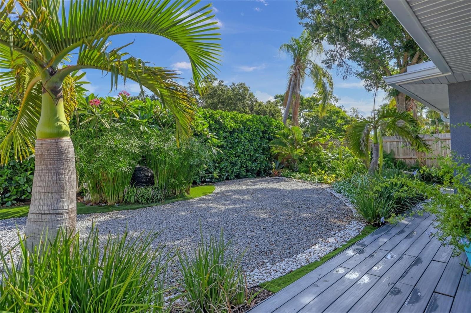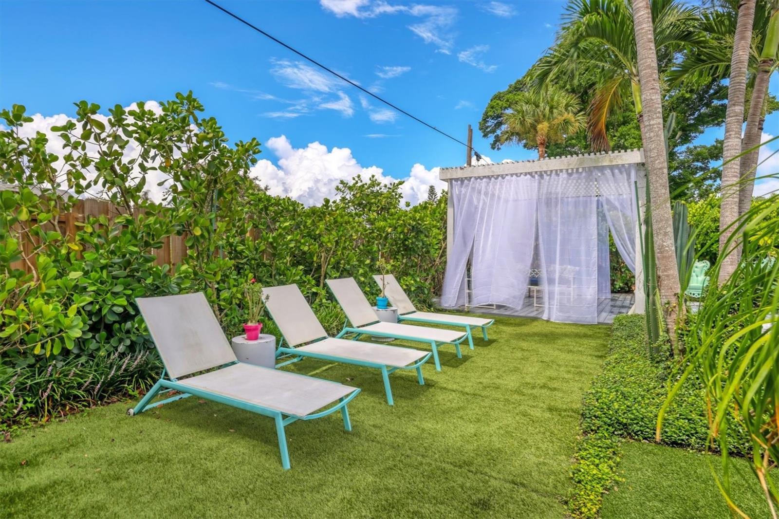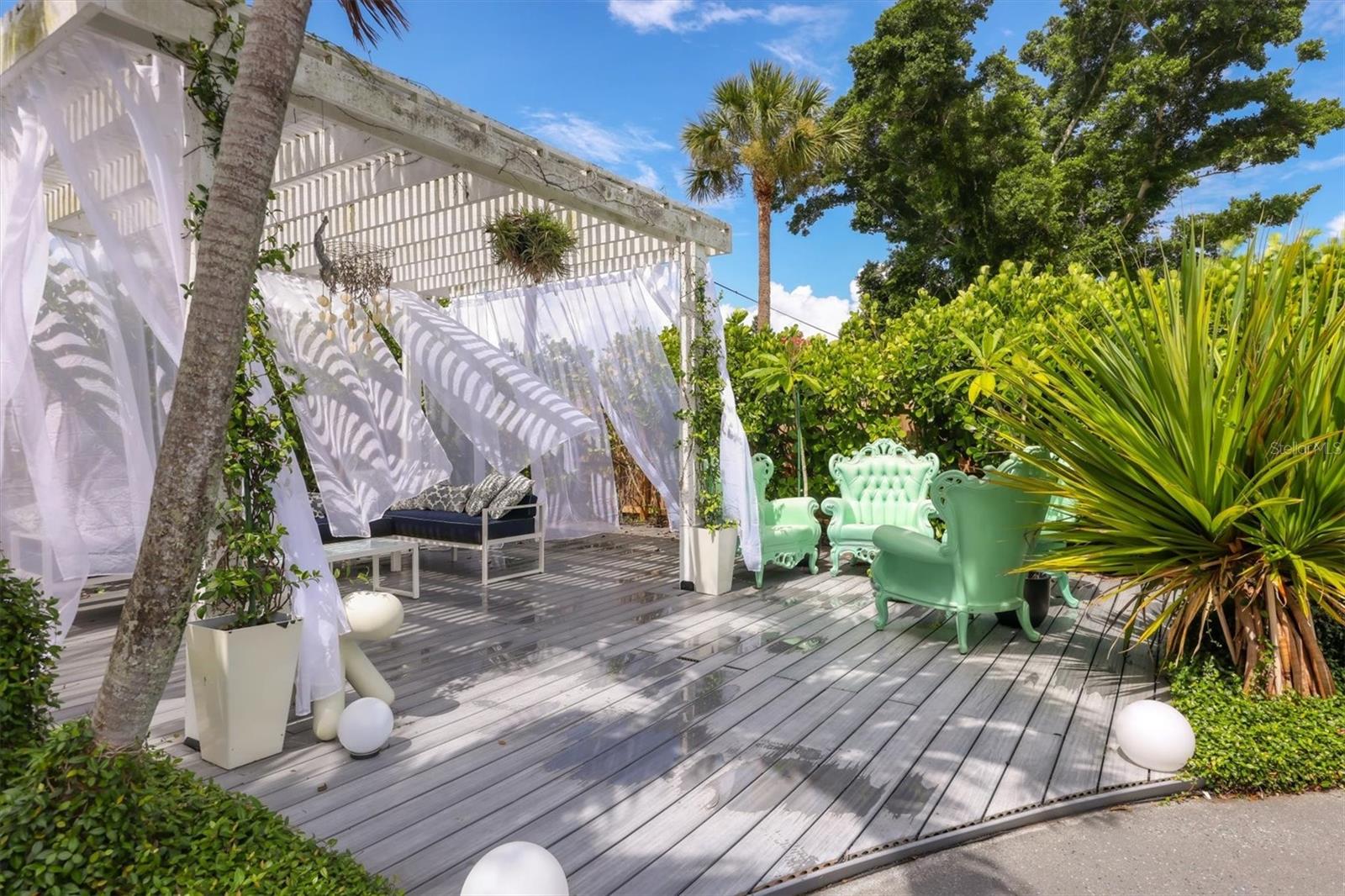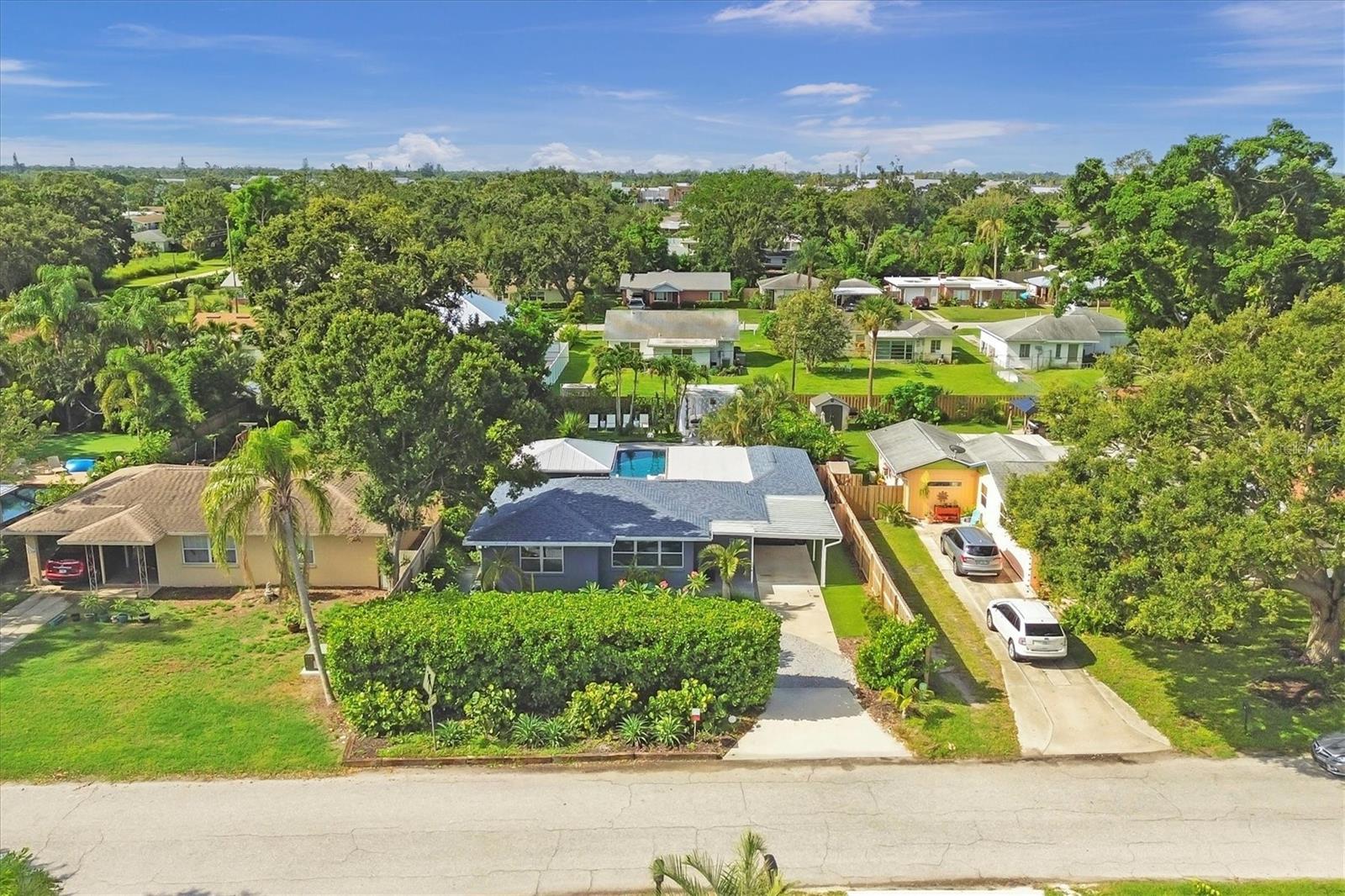 Tucked behind a lush hedge and wrapped in the charm of Old Florida, this beautifully transformed 1950s bungalow offers the serenity of a private hideaway blended with modern sophistication. From the moment you arrive, you'll sense the tranquility and seclusion this 3-bedroom, 2-bath pool home provides--a true sanctuary from the outside world. Step inside and discover a space that has been reimagined, where every element speaks of quiet luxury and comfort. The rich glow of luxury vinyl floors flows throughout, grounding the home in warmth and elegance. Carefully chosen wood doors with frosted glass add texture and refinement, while custom blinds and sleek ceiling fans carry the modern aesthetic effortlessly from room to room. Every detail has been curated with thought and intention--from heated towel racks to bidet-style toilets offering spa-like indulgence. The kitchen is a gleaming showcase of both function and style. A stunning stainless steel accent wall contrasts beautifully with the Fisher & Paykel pull-out dishwashers, a five-burner gas range, Italian range hood, and built-in KitchenAid microwave and oven. Every cabinet has pull-out drawers for seamless organization. This culinary space is perfect for both day-to-day living and joyful entertaining. The primary suite is a spacious retreat, featuring four closets--including a walk-in--and a split A/C system for personalized comfort. A retractable-mounted TV adds versatility, while the en suite bath is a study in sophistication with a shower/tub combo and a beautifully tiled ceiling. All infrastructure has been updated--from plumbing and electrical to a brand-new roof, new A/C unit, impact-rated windows, and commercial-grade impact doors. This home is not only visually captivating but also move-in ready with peace of mind built in. The backyard is where this home truly shines. Step into your own private Eden, with a rare round pool at its center. Decking extends toward a draped gazebo, where sheer curtains sway in the breeze. Magnificent garden beds and mature plantings wrap around the pool, leading to a second pavilion outfitted with a sink, fridge, built-in BBQ, and remote-controlled screens for added comfort. Surround sound flows through the garden, enhancing every alfresco gathering, swim, or quiet moment. Low-maintenance artificial turf keeps the grounds pristine, allowing the vibrant greenery to take center stage. Whether entertaining or enjoying downtime, you'll never want to leave. The front yard features a tranquil water feature and a wraparound deck leading to a shaded bench and sitting area. The natural barrier of hedges provides privacy from the street, echoing the quiet grace found throughout the property. This is not just a house--it's a retreat, a sanctuary, a daily escape into beauty and ease. Whether you're relaxing under the gazebo, preparing a meal in the gourmet kitchen, or simply enjoying the garden from your bedroom window, this home blends indoor luxury with outdoor splendor, making every day feel like a holiday. Located in the highly sought-after Southgate neighborhood, this property offers a coveted address in Sarasota, renowned for its central convenience and inclusion in the area's top-rated school district. Just a 10-minute drive to the world-famous white sands of Siesta Beach, and only about 8 minutes to vibrant downtown Sarasota, with dining, entertainment, and the popular Farmers Market.