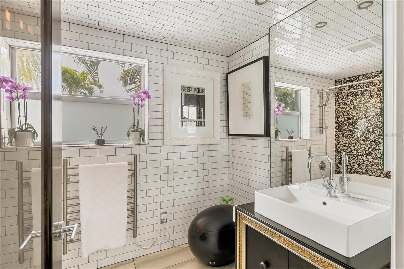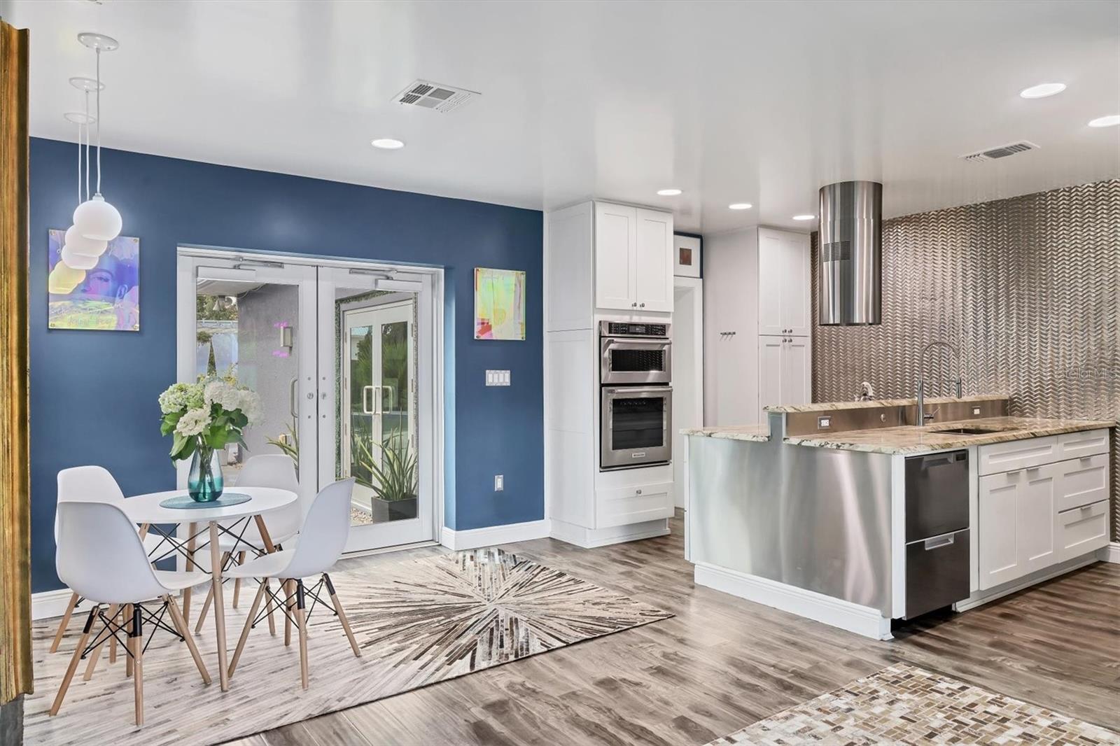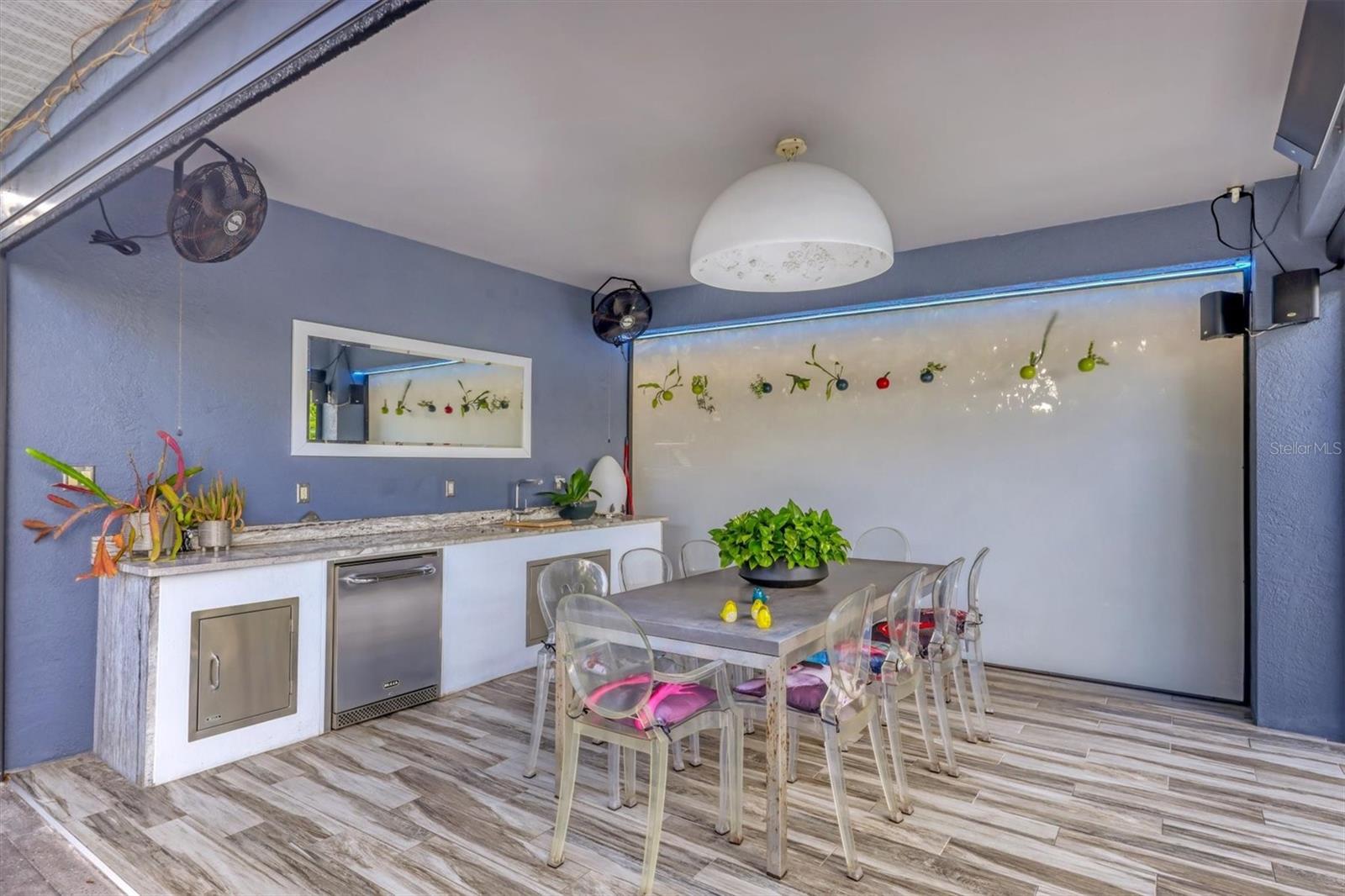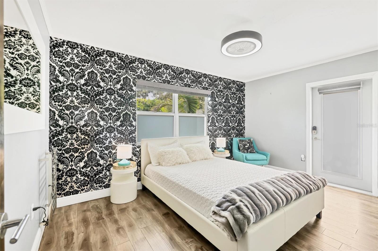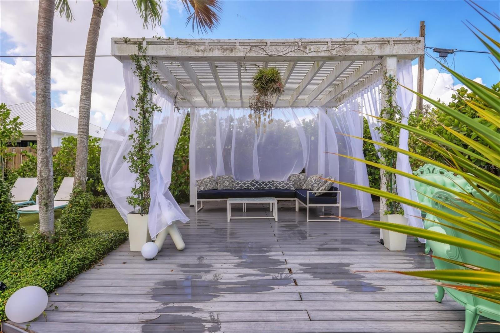 Tucked behind a lush hedge and wrapped in the charm of Old Florida, this beautifully transformed 1950s bungalow offers the serenity of a private hideaway blended with modern sophistication. From the moment you arrive, you'll sense the tranquility and seclusion this 3-bedroom, 2-bath pool home provides--a true sanctuary from the outside world. Step inside and discover a space that has been reimagined, where every element speaks of quiet luxury and comfort. The rich glow of luxury vinyl floors flows throughout, grounding the home in warmth and elegance. Carefully chosen wood doors with frosted glass add texture and refinement, while custom blinds and sleek ceiling fans carry the modern aesthetic effortlessly from room to room. Every detail has been curated with thought and intention--from heated towel racks to bidet-style toilets offering spa-like indulgence. The kitchen is a gleaming showcase of both function and style. A stunning stainless steel accent wall contrasts beautifully with the Fisher & Paykel pull-out dishwashers, a five-burner gas range, Italian range hood, and built-in KitchenAid microwave and oven. Every cabinet has pull-out drawers for seamless organization. This culinary space is perfect for both day-to-day living and joyful entertaining. The primary suite is a spacious retreat, featuring four closets--including a walk-in--and a split A/C system for personalized comfort. A retractable-mounted TV adds versatility, while the en suite bath is a study in sophistication with a shower/tub combo and a beautifully tiled ceiling. All infrastructure has been updated--from plumbing and electrical to a brand-new roof, new A/C unit, impact-rated windows, and commercial-grade impact doors. This home is not only visually captivating but also move-in ready with peace of mind built in. The backyard is where this home truly shines. Step into your own private Eden, with a rare round pool at its center. Decking extends toward a draped gazebo, where sheer curtains sway in the breeze. Magnificent garden beds and mature plantings wrap around the pool, leading to a second pavilion outfitted with a sink, fridge, built-in BBQ, and remote-controlled screens for added comfort. Surround sound flows through the garden, enhancing every alfresco gathering, swim, or quiet moment. Low-maintenance artificial turf keeps the grounds pristine, allowing the vibrant greenery to take center stage. Whether entertaining or enjoying downtime, you'll never want to leave. The front yard features a tranquil water feature and a wraparound deck leading to a shaded bench and sitting area. The natural barrier of hedges provides privacy from the street, echoing the quiet grace found throughout the property. This is not just a house--it's a retreat, a sanctuary, a daily escape into beauty and ease. Whether you're relaxing under the gazebo, preparing a meal in the gourmet kitchen, or simply enjoying the garden from your bedroom window, this home blends indoor luxury with outdoor splendor, making every day feel like a holiday. Located in the highly sought-after Southgate neighborhood, this property offers a coveted address in Sarasota, renowned for its central convenience and inclusion in the area's top-rated school district. Just a 10-minute drive to the world-famous white sands of Siesta Beach, and only about 8 minutes to vibrant downtown Sarasota, with dining, entertainment, and the popular Farmers Market.