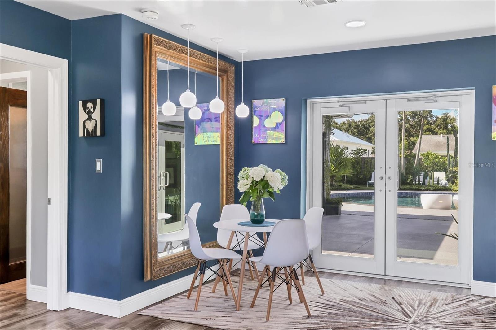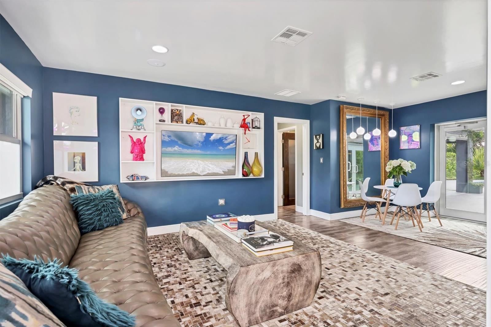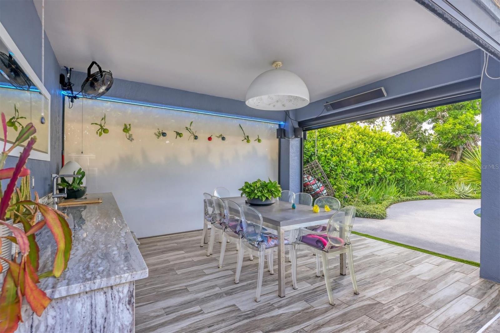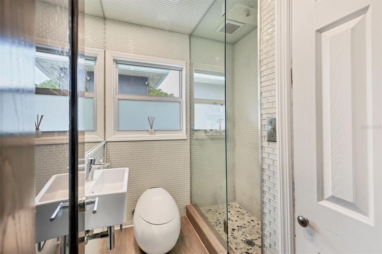 Tucked behind a lush hedge and wrapped in the charm of Old Florida, this beautifully transformed 1950s bungalow offers the serenity of a private hideaway blended with modern sophistication. From the moment you arrive, you'll sense the tranquility and seclusion this 3-bedroom, 2-bath pool home provides--a true sanctuary from the outside world. Step inside and discover a space that has been reimagined, where every element speaks of quiet luxury and comfort. The rich glow of luxury vinyl floors flows throughout, grounding the home in warmth and elegance. Carefully chosen wood doors with frosted glass add texture and refinement, while custom blinds and sleek ceiling fans carry the modern aesthetic effortlessly from room to room. Every detail has been curated with thought and intention--from heated towel racks to bidet-style toilets offering spa-like indulgence. The kitchen is a gleaming showcase of both function and style. A stunning stainless steel accent wall contrasts beautifully with the Fisher & Paykel pull-out dishwashers, a five-burner gas range, Italian range hood, and built-in KitchenAid microwave and oven. Every cabinet has pull-out drawers for seamless organization. This culinary space is perfect for both day-to-day living and joyful entertaining. The primary suite is a spacious retreat, featuring four closets--including a walk-in--and a split A/C system for personalized comfort. A retractable-mounted TV adds versatility, while the en suite bath is a study in sophistication with a shower/tub combo and a beautifully tiled ceiling. All infrastructure has been updated--from plumbing and electrical to a brand-new roof, new A/C unit, impact-rated windows, and commercial-grade impact doors. This home is not only visually captivating but also move-in ready with peace of mind built in. The backyard is where this home truly shines. Step into your own private Eden, with a rare round pool at its center. Decking extends toward a draped gazebo, where sheer curtains sway in the breeze. Magnificent garden beds and mature plantings wrap around the pool, leading to a second pavilion outfitted with a sink, fridge, built-in BBQ, and remote-controlled screens for added comfort. Surround sound flows through the garden, enhancing every alfresco gathering, swim, or quiet moment. Low-maintenance artificial turf keeps the grounds pristine, allowing the vibrant greenery to take center stage. Whether entertaining or enjoying downtime, you'll never want to leave. The front yard features a tranquil water feature and a wraparound deck leading to a shaded bench and sitting area. The natural barrier of hedges provides privacy from the street, echoing the quiet grace found throughout the property. This is not just a house--it's a retreat, a sanctuary, a daily escape into beauty and ease. Whether you're relaxing under the gazebo, preparing a meal in the gourmet kitchen, or simply enjoying the garden from your bedroom window, this home blends indoor luxury with outdoor splendor, making every day feel like a holiday. Located in the highly sought-after Southgate neighborhood, this property offers a coveted address in Sarasota, renowned for its central convenience and inclusion in the area's top-rated school district. Just a 10-minute drive to the world-famous white sands of Siesta Beach, and only about 8 minutes to vibrant downtown Sarasota, with dining, entertainment, and the popular Farmers Market.