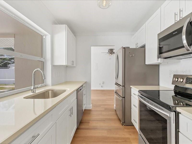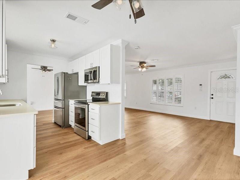 This charming 3-bedroom, 2-bath residence has been thoughtfully updated throughout, featuring brand-new luxury vinyl flooring in warm wood tones, fresh bright interior and exterior paint, and stunningly redesigned bathrooms. The heart of the home is the all-new kitchen, showcasing modern cabinetry, sleek countertops, and plenty of space for entertaining or everyday living.