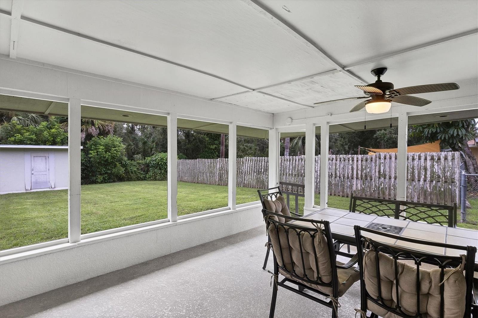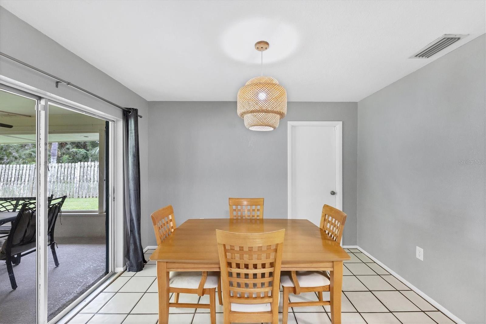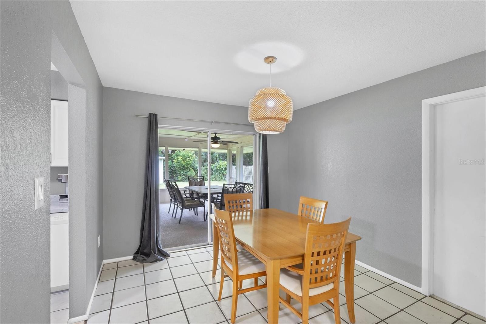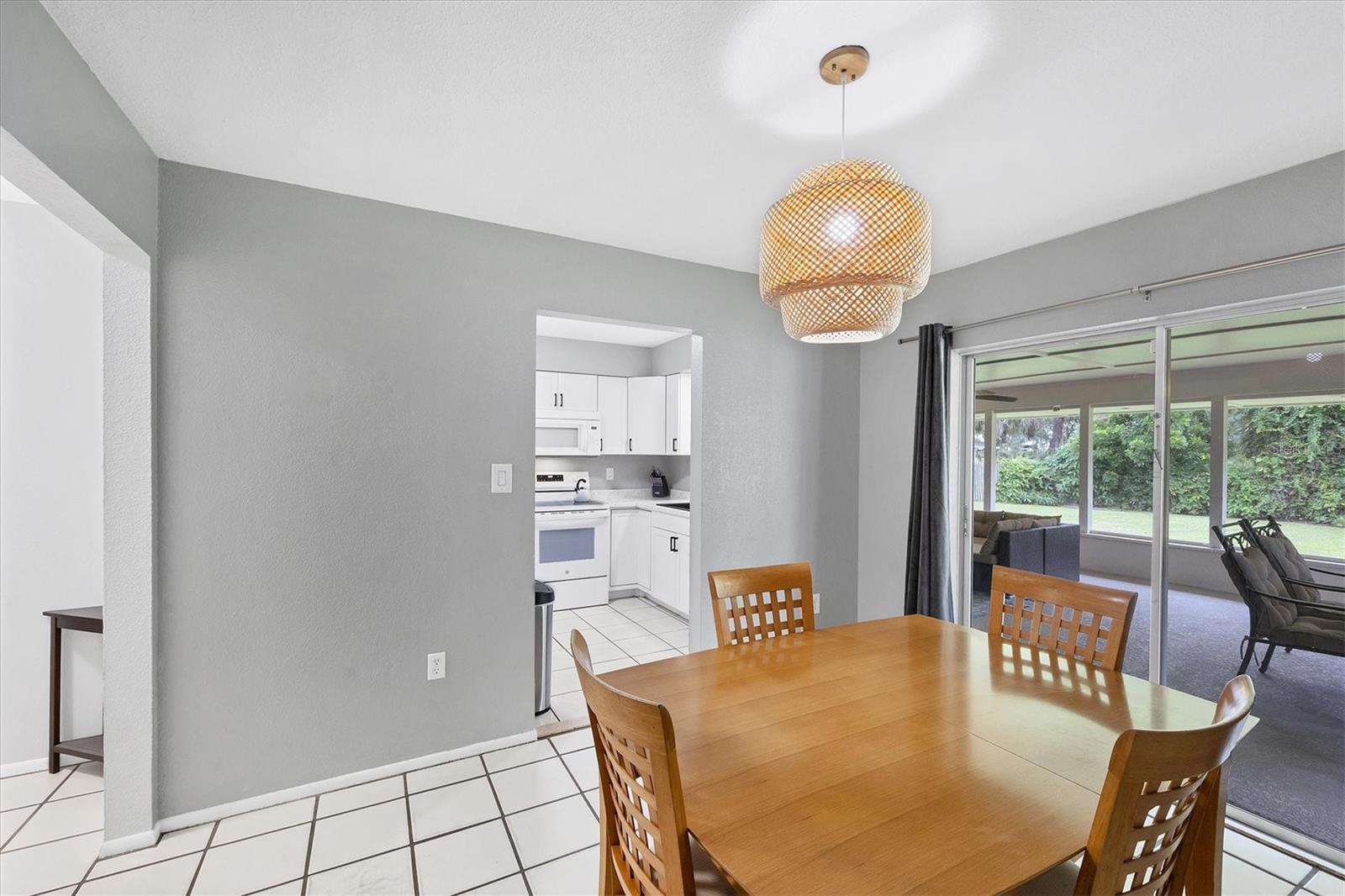 Just off the kitchen, the dedicated dining room features large sliding glass doors that lead out to the expansive covered and screened-in porch--an entertainer's dream. Enjoy outdoor dining, relaxed lounging, and game nights with a full setup that includes a dining table, cozy seating area, foosball table, and a large-screen TV.