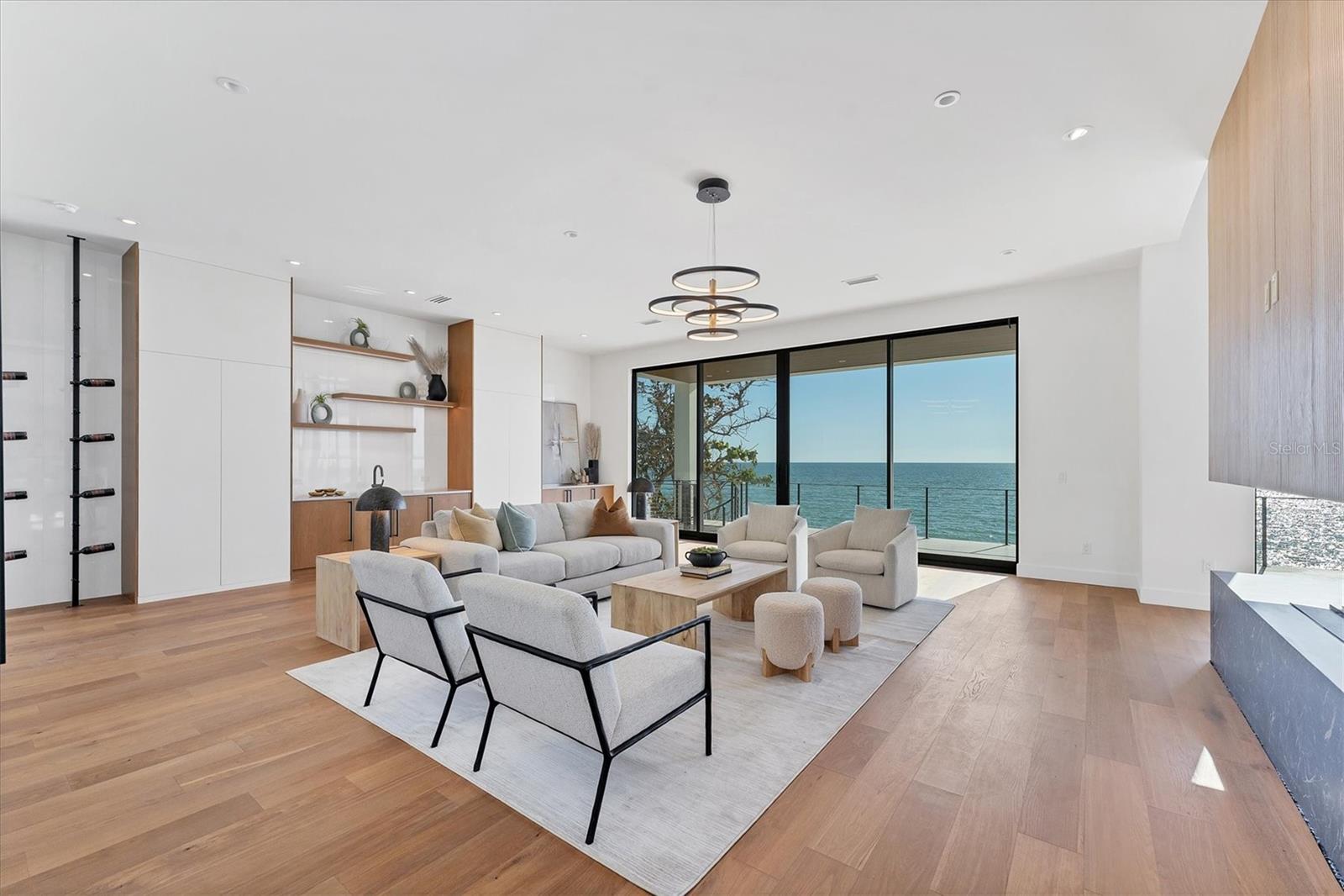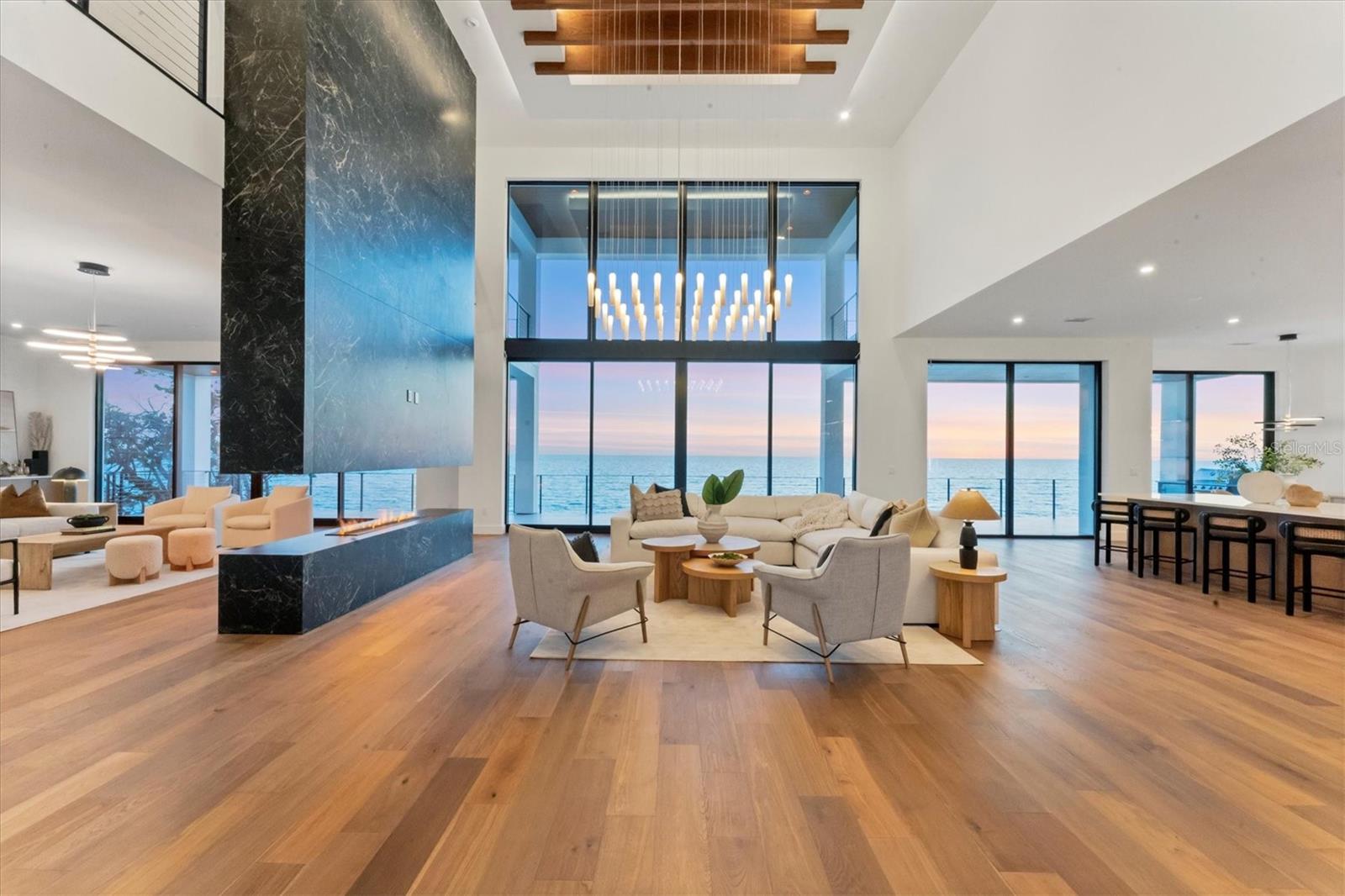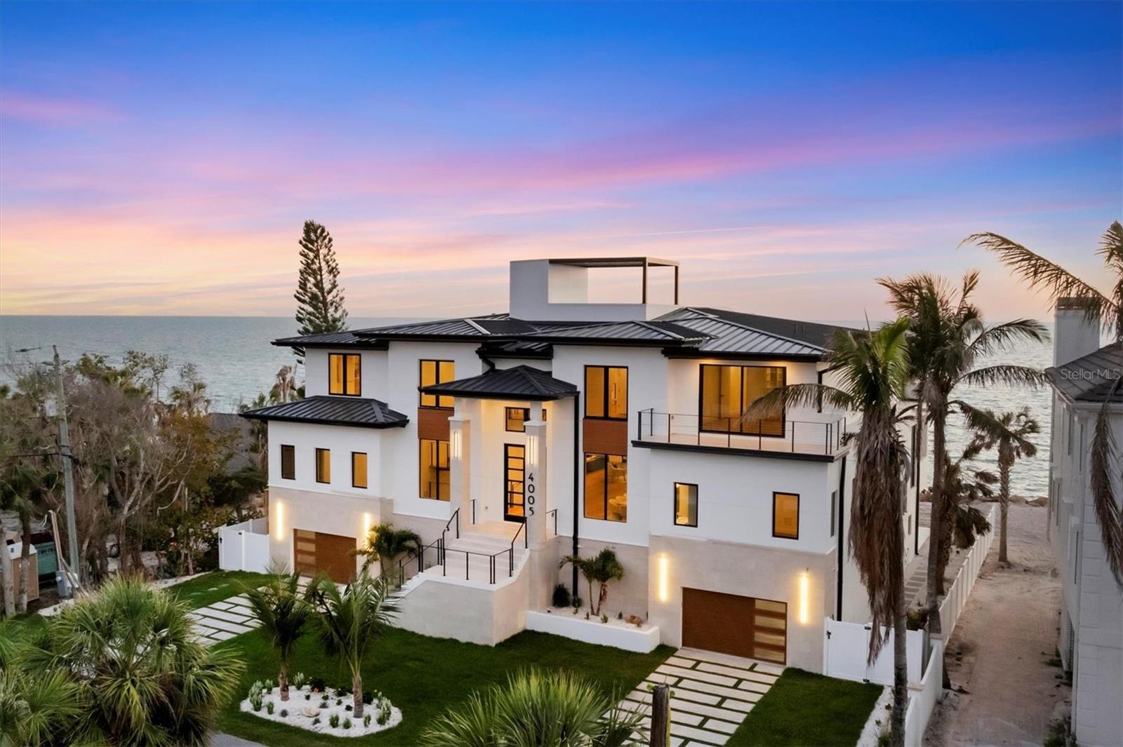 WELCOME TO ONE OF THE FEW BRAND-NEW GULF FRONT HOMES FOR SALE ON THE WEST CENTRAL COAST OF FLORIDA. A rare opportunity, where cutting-edge design meets wide Gulf vistas. Nestled on the prestigious barrier island of Casey Key, this newly constructed Modern Coastal estate by Modesta Homes exemplifies modern beachfront living. Positioned directly on the sand with sweeping Gulf views, this striking residence offers elevated living space, showcasing the pinnacle of craftsmanship and architectural innovation. Built with block construction, pilings, impact-rated windows and doors, and a four-stop elevator, every detail of this home has been thoughtfully curated for style, function, and resilience. Inside, soaring 24-foot ceilings welcome you into the grand foyer and great room, anchored by a dramatic floating staircase and a 24-foot feature fireplace wall. With en-suite bedrooms, state-of-the-art home theater, lounge, bar, and a wine wall, this home offers both grand entertaining and serene retreat. The chef's kitchen is a design showpiece, featuring European cabinetry, dual waterfall-edge islands clad in book-matched 3cm quartz, and premium Sub-Zero & Wolf appliances. Dual laundry rooms, breakfast nook, and custom built-in vanities provide elevated everyday living. The primary suite is a personal sanctuary, complete with a spa-like bathroom featuring a 71-inch freestanding tub, dual rainfall showers, a makeup vanity, and a large walk-in closet. Every bathroom throughout the home is appointed with bespoke cabinetry, quartz surfaces, and backlit mirrors. Designed to impress from every angle, the home is finished with smooth stucco, level 5 drywall, hardwood floors, imported tile, and integrated LED tray ceilings. A sleek rooftop terrace crowns the home, offering panoramic views of the Gulf and beyond. Step outside to your personal resort: an expansive terrace with an oceanfront pool, floating spa, sun decks, outdoor fireplace, and fully equipped kitchen. Lush, tropical landscaping, Zoysia grass, and a concrete drive with turf inlays complete the impeccable exterior design. Sleek metal railings accentuate balconies and the rooftop for a modern edge. Set on a half-acre of prime waterfront. This is coastal modern luxury at its pinnacle--a rare opportunity to own a brand-new, Gulf-front estate on one of Sarasota's most desirable stretches of sand.